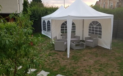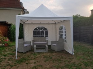 - Robuste und stabile Konstruktion mit hoher Seiten- und Mittelhöhe von 2,10 m und 3,15 m